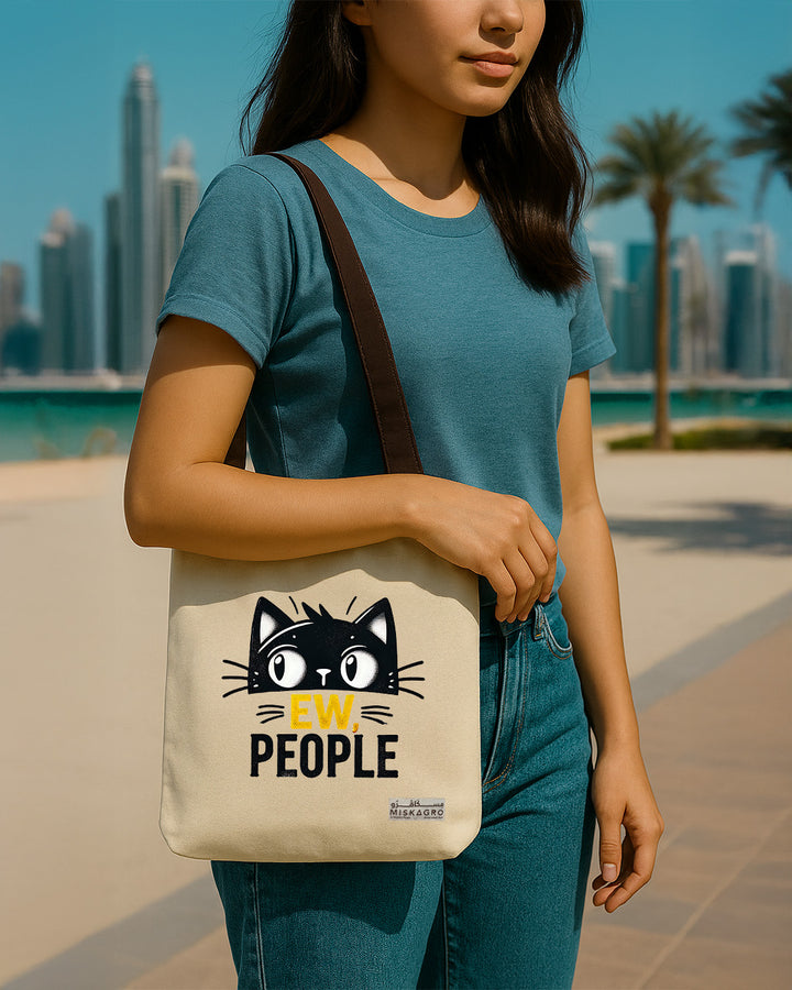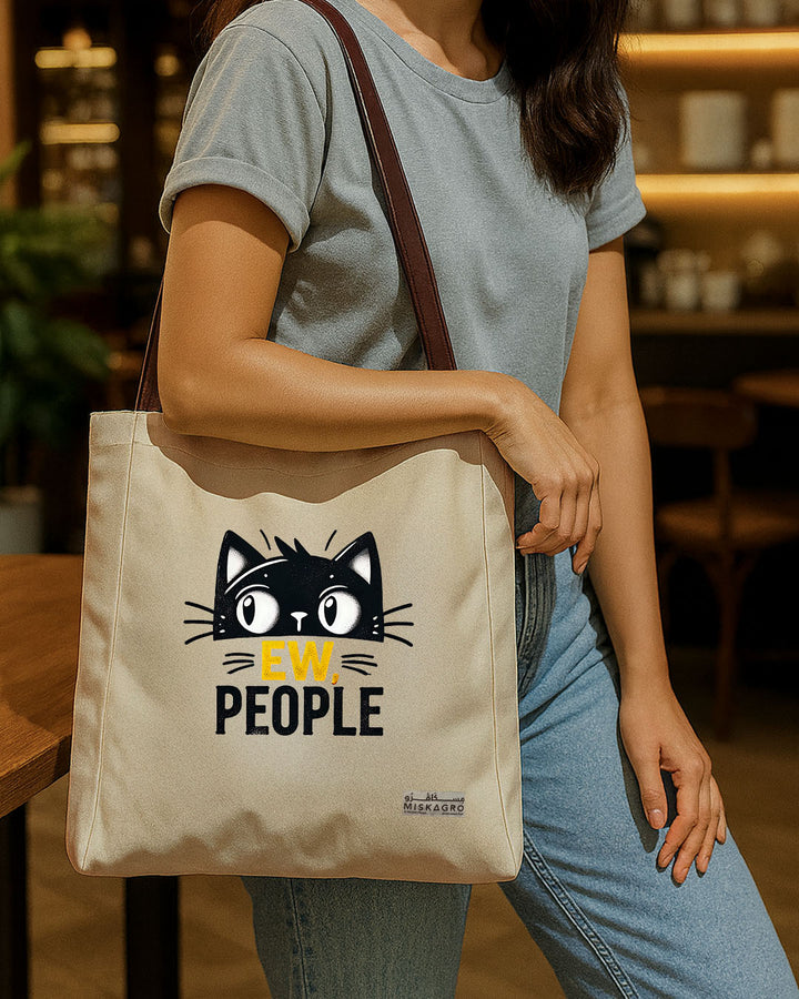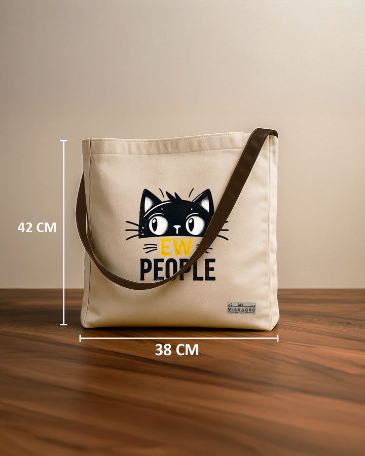 A stylish canvas tote bag designed for everyday use. Made from durable beige fabric with a strong brown strap, featuring unique graphic designs. Spacious, lightweight, and versatile — perfect for daily errands, shopping, or casual outings.