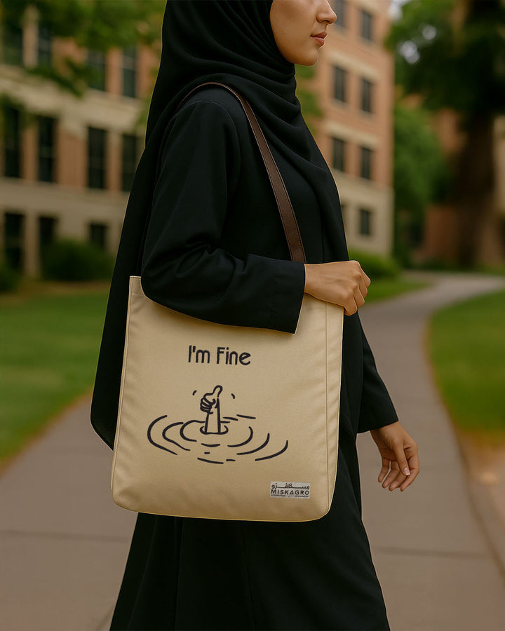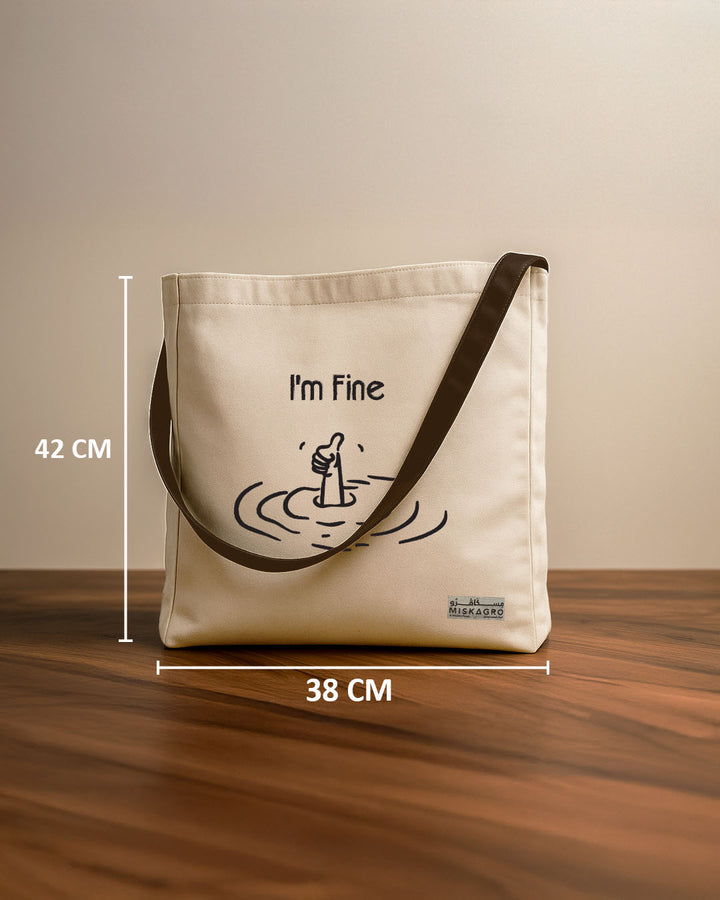 A stylish canvas tote bag designed for everyday use. Made from durable beige fabric with a strong brown strap, featuring unique graphic designs. Spacious, lightweight, and versatile — perfect for daily errands, shopping, or casual outings.
