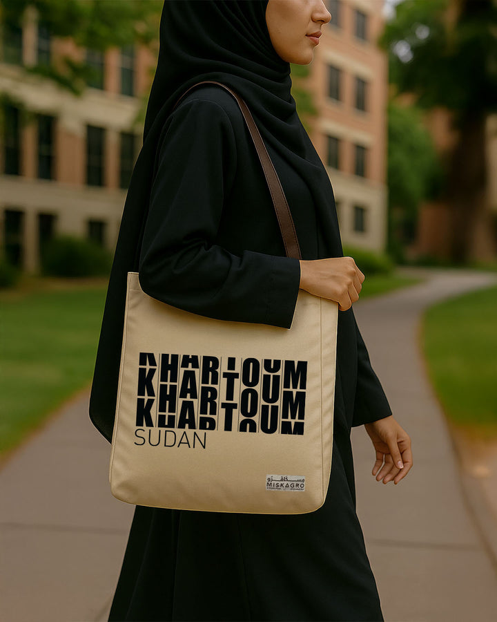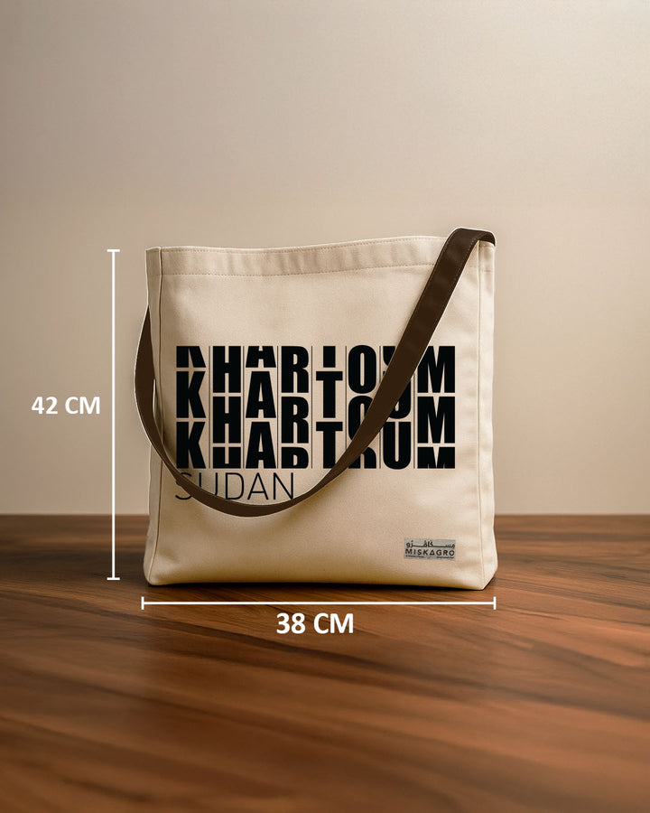A stylish canvas tote bag designed for everyday use. Made from durable beige fabric with a strong brown strap, featuring unique graphic designs. Spacious, lightweight, and versatile — perfect for daily errands, shopping, or casual outings.