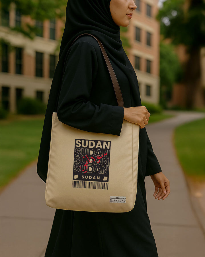 A stylish canvas tote bag designed for everyday use. Made from durable beige fabric with a strong brown strap, featuring unique graphic designs. Spacious, lightweight, and versatile — perfect for daily errands, shopping, or casual outings.